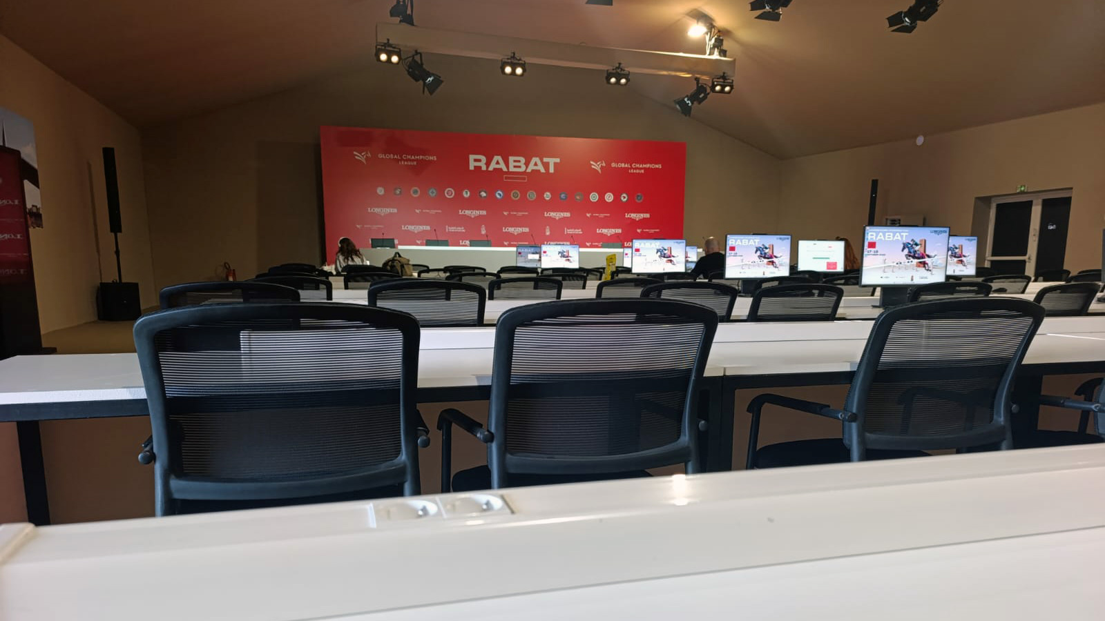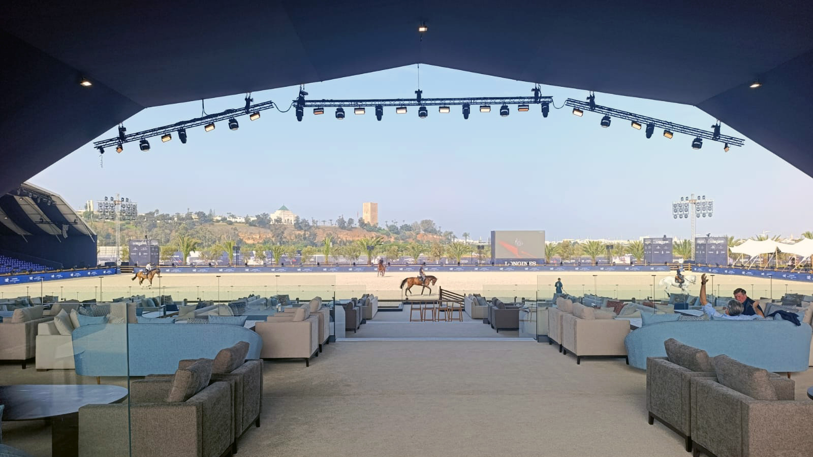 L’étape de Rabat se distingue par ses exigences techniques élevées et un calendrier de montage particulièrement serré. À cette occasion, nous avons installé des systèmes modulaires de climatisation dans les zones VIP, les espaces d’accueil (“hospitality”), les boxes et les zones de compétition, ainsi que des réseaux électriques provisoires destinés à l’éclairage, au son, aux écrans, aux bureaux et aux espaces de service.